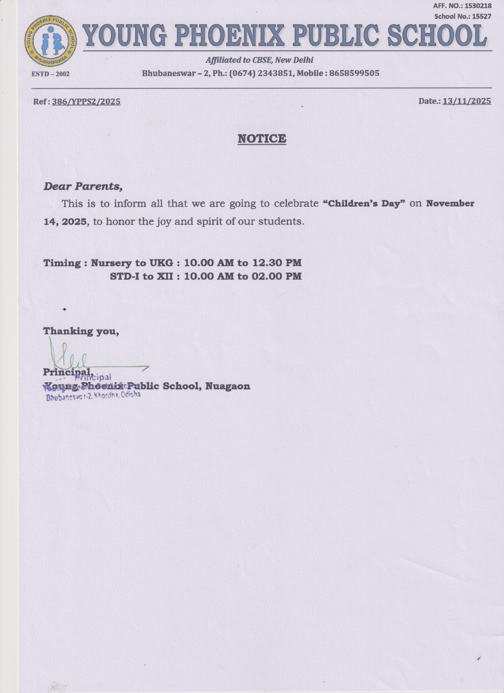Ref.No-386/YPPS/2025, Children\'s Day Notice- Date-13/11/2025