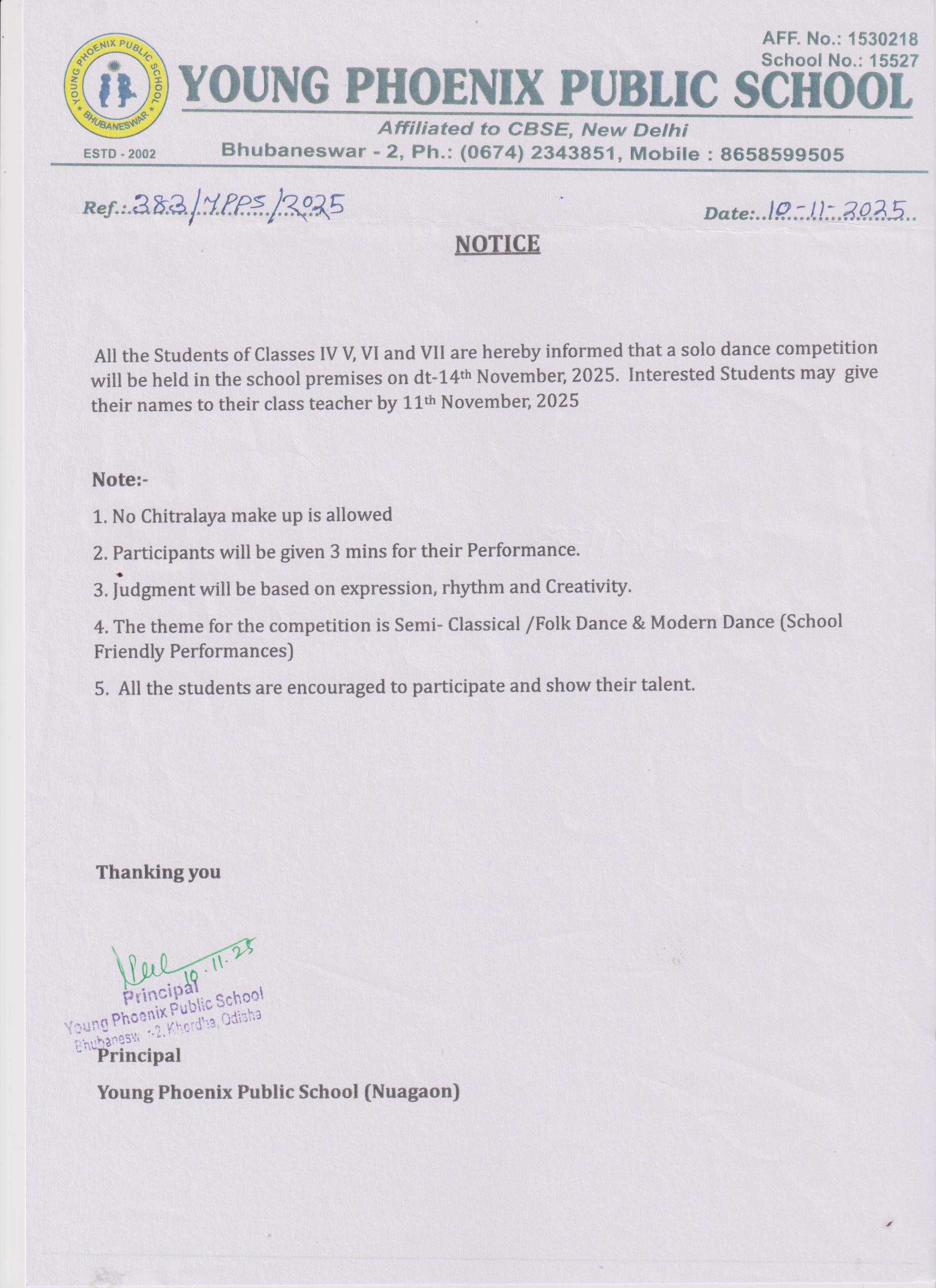 Ref.No-383/YPPS/2025, Dance Competition - Dt-10/11/2025