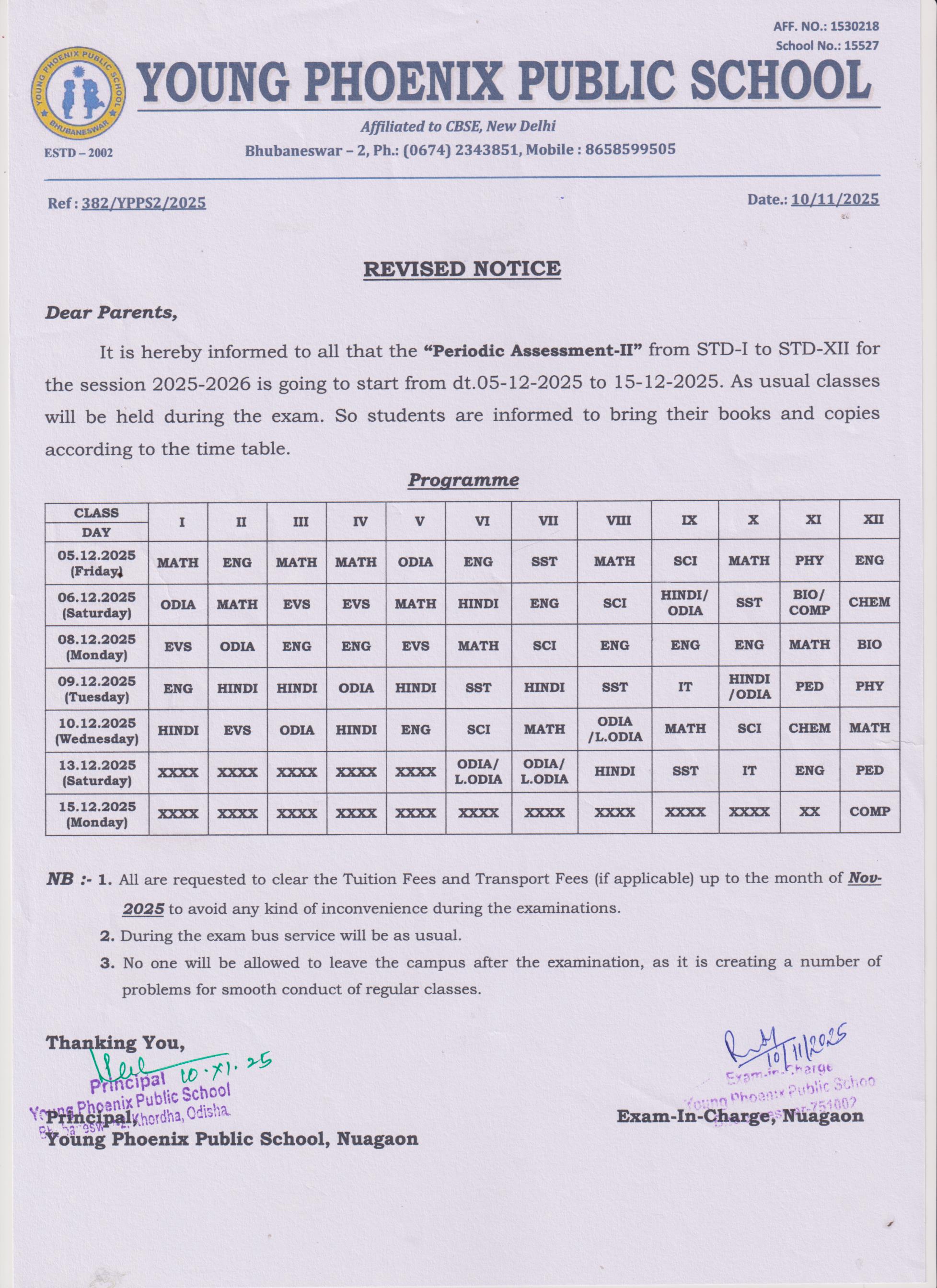 Ref.No-382/YPPS/2025, Periodic Assessment -II, Dt-10/11/2025