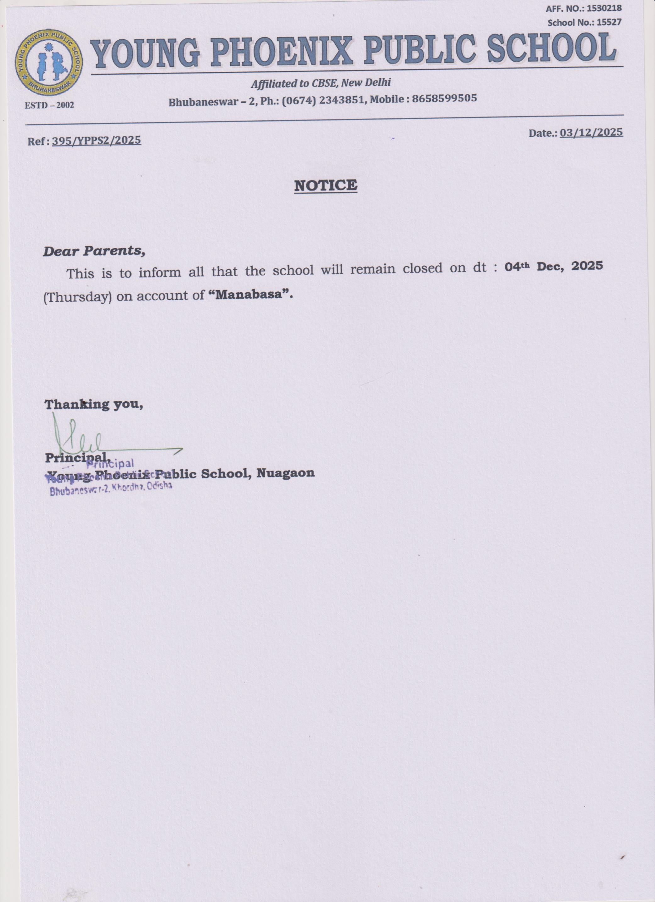 Ref.No-395/YPPS/2025 Manabasa Notice-Dt-03/12/2025