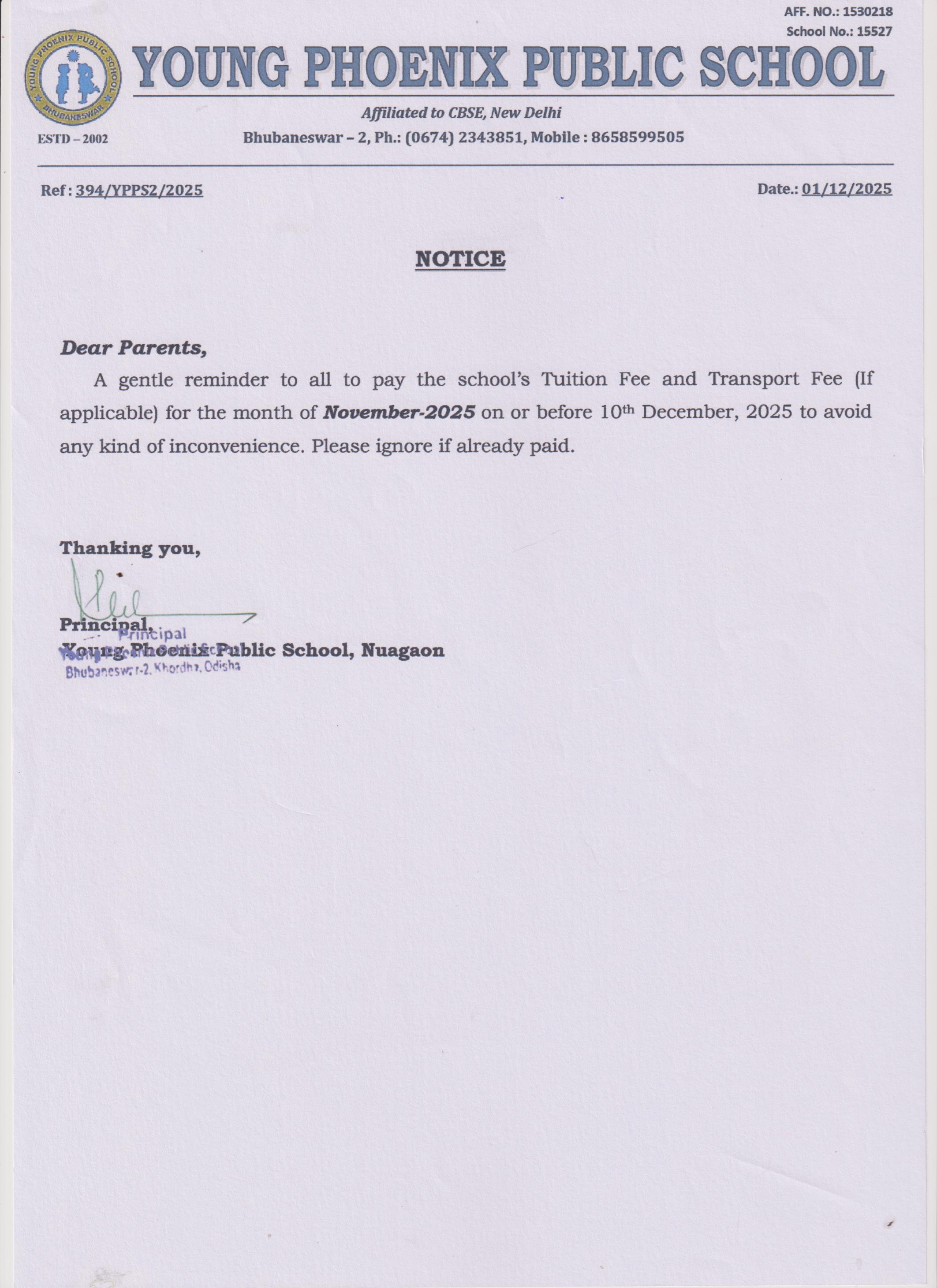 Ref.No-394/YPPS/2025, Monthly Reminder Notice- Dt-01/12/2025