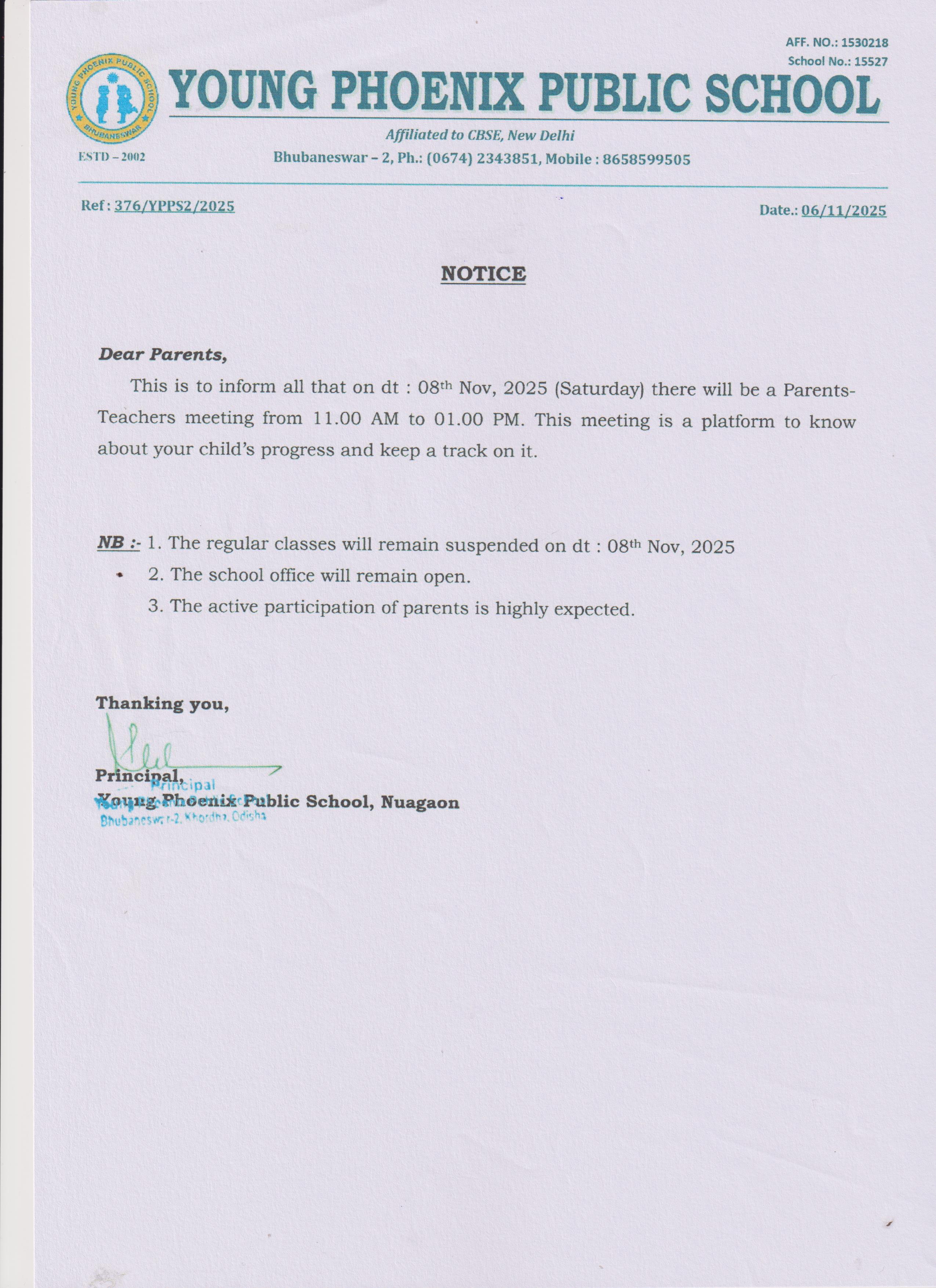 Ref. No-376/YPPS/2025, PTM Notice -Dt-06/11/2025